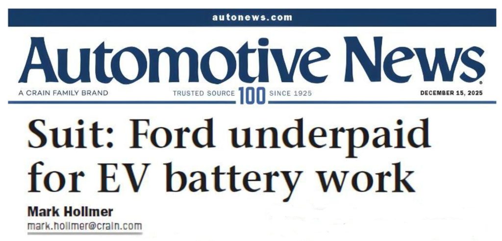 Suit: Ford underpaid for EV battery work